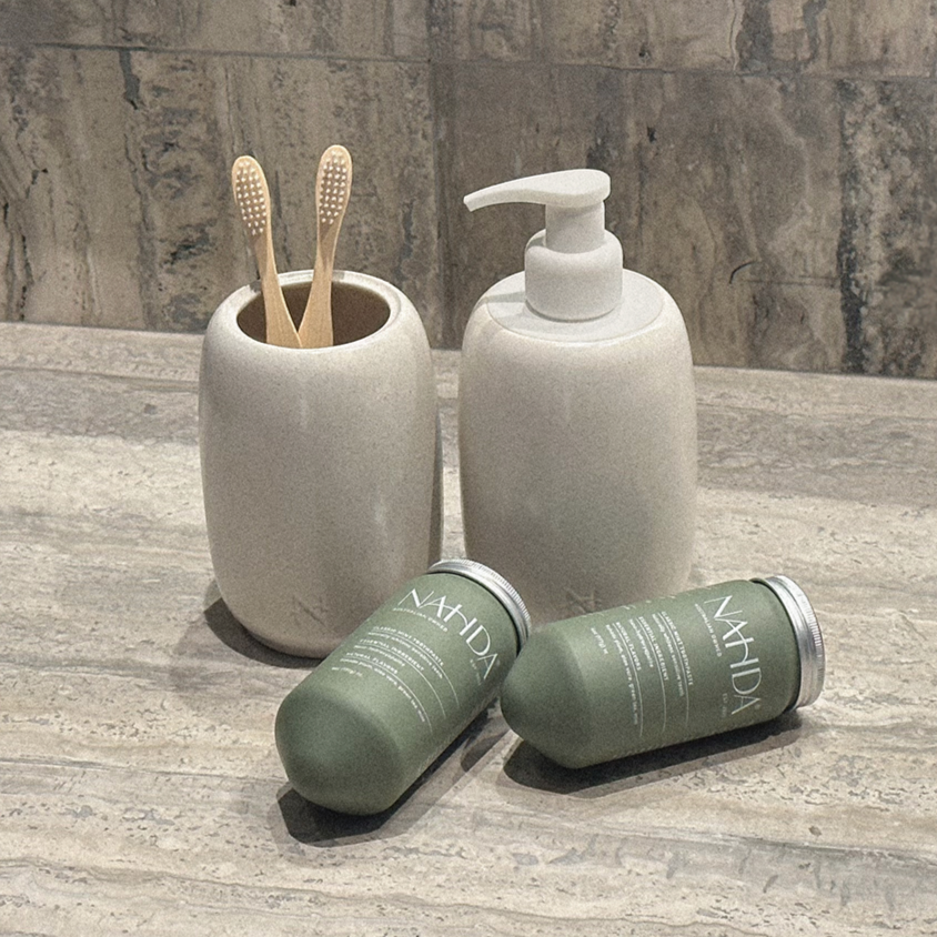In literally every single way. Firstly, our pods are made from BPA-free aluminum, not plastic, which is an infinitely recyclable material. Secondly, Nahda toothpaste pods are twice the size of a standard natural toothpaste tube, which means less waste and fewer transportation emissions. Last but definitely not least, our pods have a dip-tube friendly cone-shape to prevent waste. No more cutting of toothpaste tubes and struggling to get the last bit out.